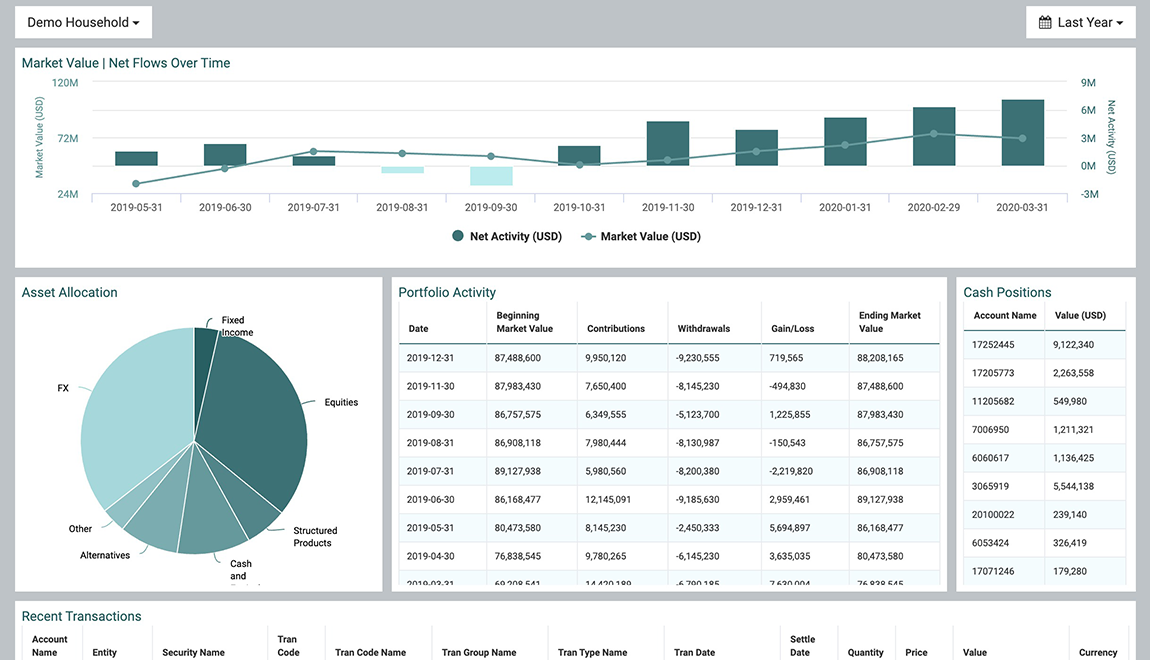 Deliver a holistic summary of client assets through a single sign-on, secure FTP, and API connectors gathering data in the background.